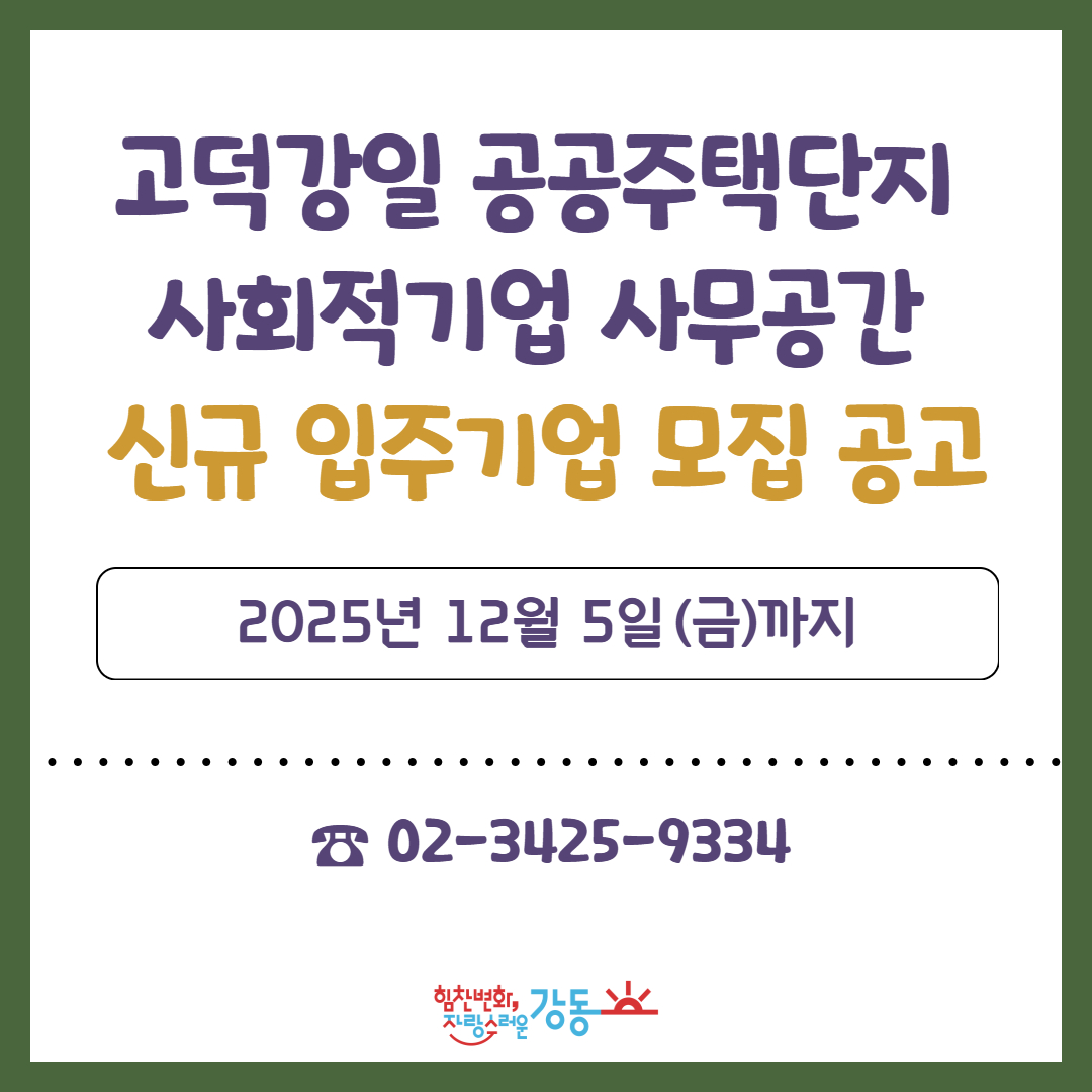 | 제목 | 고덕강일 공공주택단지 사회적기업 사무공간 신규 입주기업 모집 안내 | ||