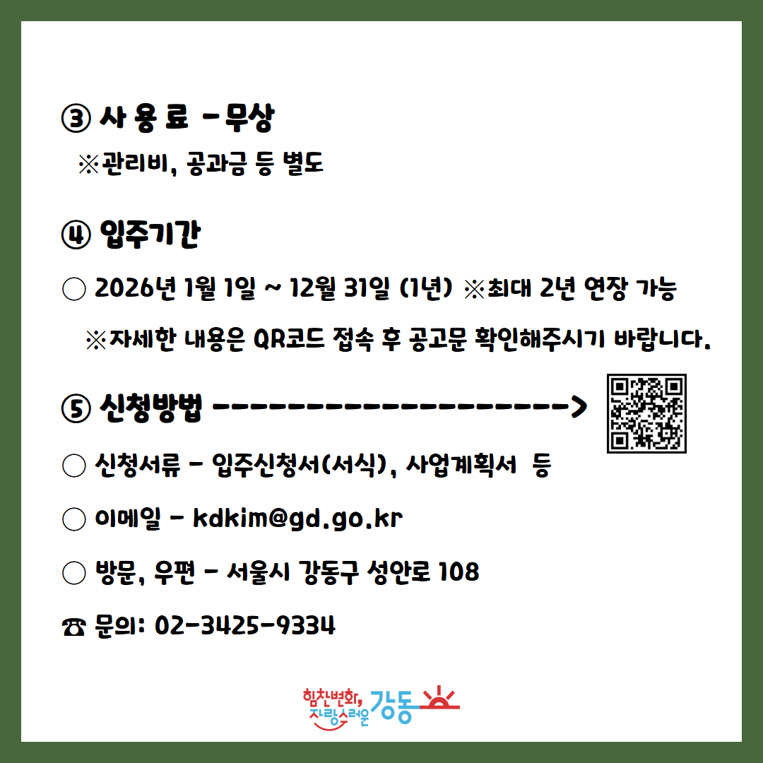 강동구청 에서 창작한 본 저작물은 "공공누리" 제4유형:출처표시+상업적 이용금지+변경금지 조건에 따라 이용할 수 있습니다.